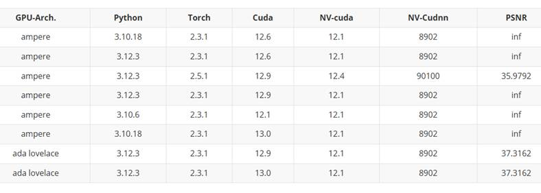 Answer: The PSNR accuracy in the baseline should normally be inf (infinity). We recommend that: Check whether the model was downloaded correctly, Verify if the executed shell script has been modified, Compare whether the generated video and the ground truth (GT) have the same duration, Confirm whether the one-to-one PSNR calculation script was executed properly.